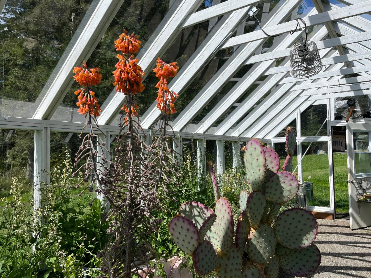 | | It has also become our weekend lunch spot-bundled up in the winter and fans on in the summer heat. Our trips to England to visit Chris’ family always include trips to gardens and especially to glass houses as he is always looking for ideas for his next project. I love being in my greenhouse- starting seeds, carefully repotting, listening to podcasts (BBC Gardening World and Cultivating Space are my favorites) and sometimes just reading with a cup of coffee. It is a beautiful space, and I am very fortunate to have it. | | |