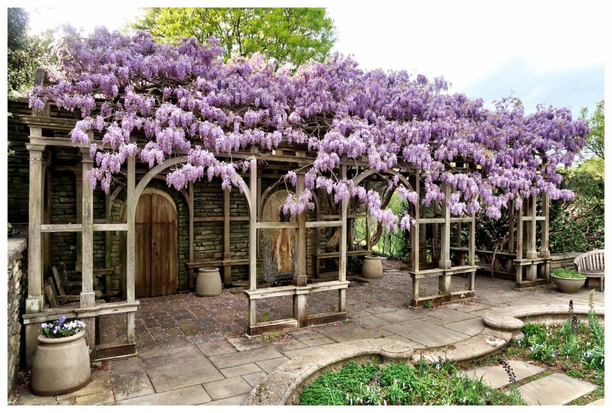 The Arbor Terrace was originally designed as a sunny herb garden with shady seats beneath the wisteria-covered arbor.