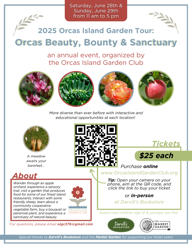 The Orcas Island Garden Club’s annual Garden Tour will be held Saturday, June 28h and Sunday, June 29th from 11 am to 5 pm each day.