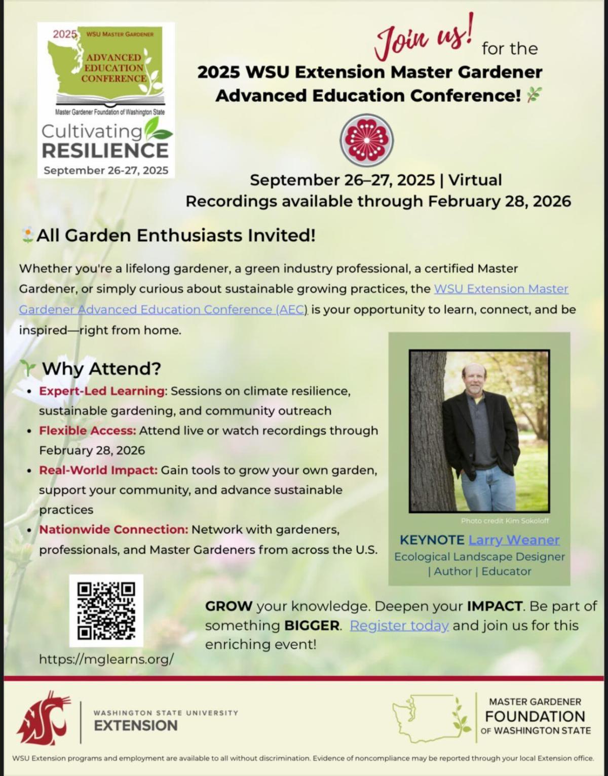 PNW Garden Savvy, Master Gardeners of King County classes are held Saturdays from 9:30 to 10:30 am online via the Zoom platform. The classes are recorded and recordings will be made available to all registrants. Class descriptions and individual workshop registrations are found on the PNW Garden Savvy web page HERE. The fee for each class will be $8.00. Advance registration is required.