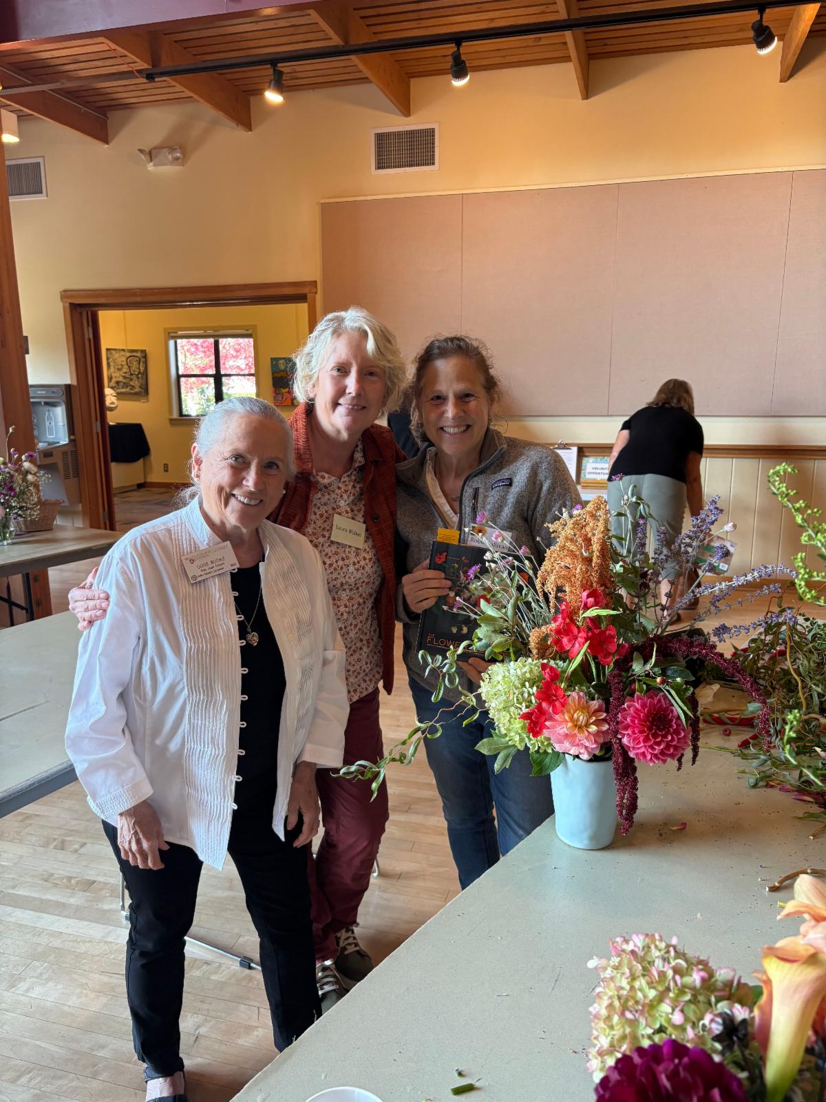 | | Robin and Laura started seeds together this year and both have this unique cosmos growing in their garden. | | | Robin, Laura and Lopez Garden Club President, Dixie Budke. | | I am truly honored to be your president again this year and I am in awe of how this club has transformed over the last few years into what we have today. Thank you for your encouragement, feedback and support over the years. I’m delighted to share with you the new members joining our leadership team. Robin Sullivan joins me as our new co-president. Robin has become a dear friend in just a short time, you’ll find her playful, outgoing and incredibly dedicated. She held a past leadership role in her New York garden club and brings her enthusiasm and passion for learning to our team. | | | |
