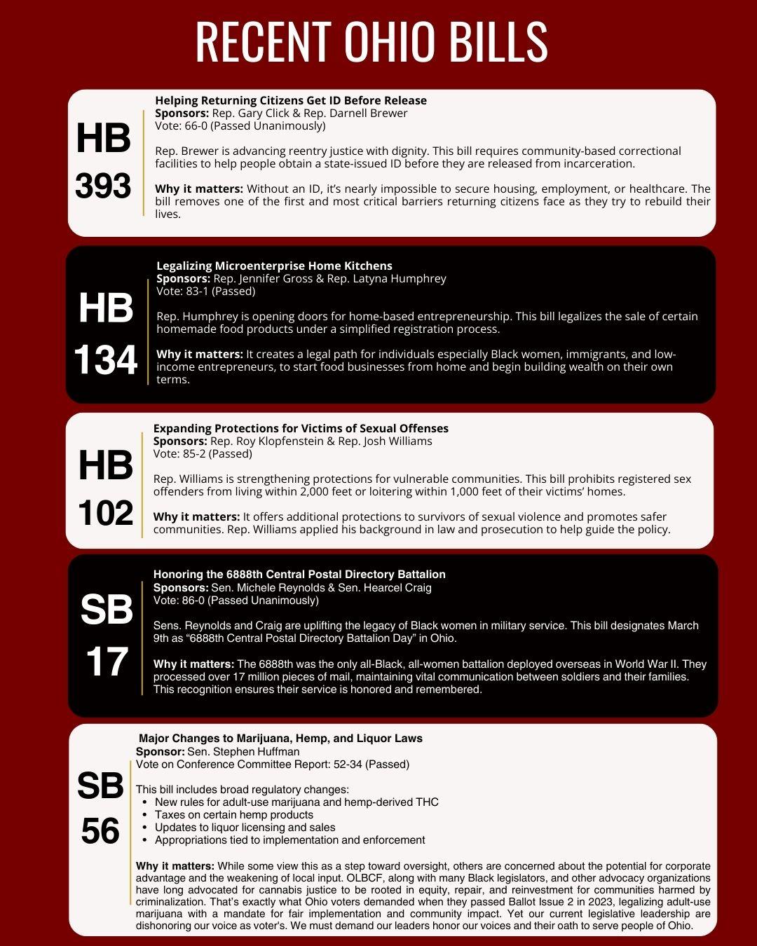 We also want to express our deep gratitude to everyone who supported OLBCF during Giving Tuesday. Your donations, no matter the size, sustain the work we do and reaffirm the importance of Black-led research, policy, and advocacy in Ohio. We are still hanging on by a thread in a rapidly shifting funding and policy climate, but your belief in our mission keeps us moving forward.