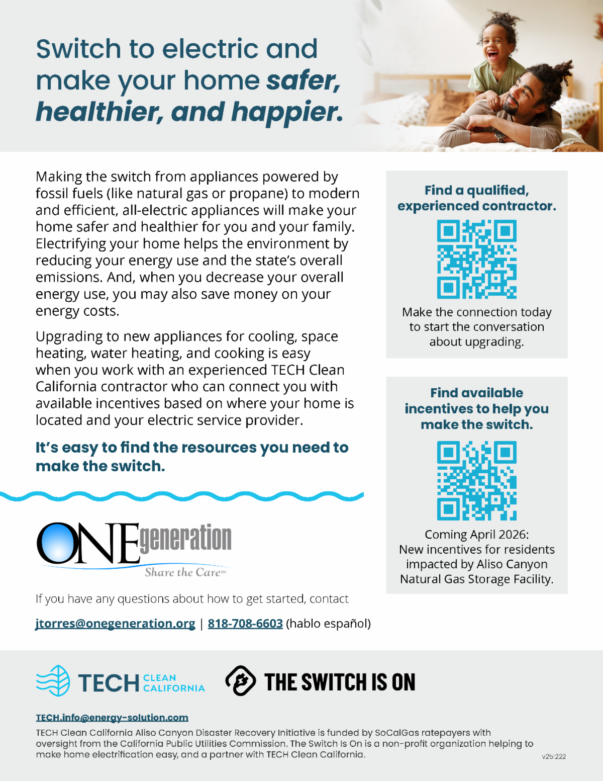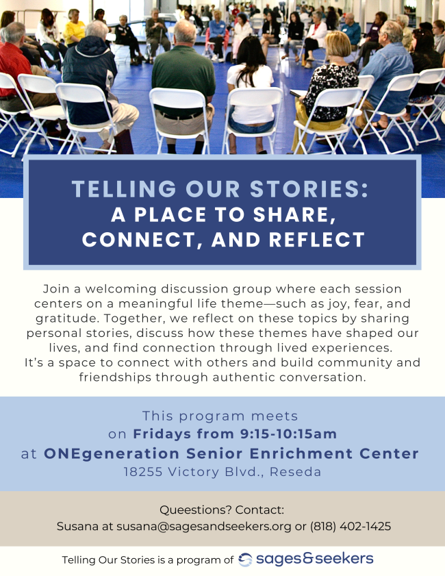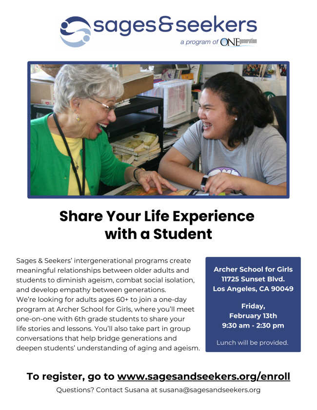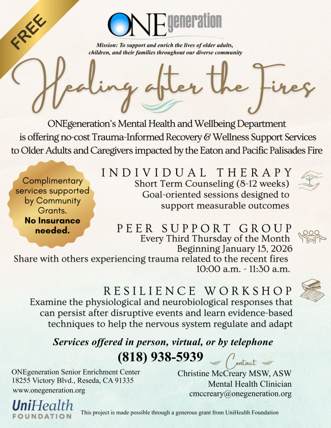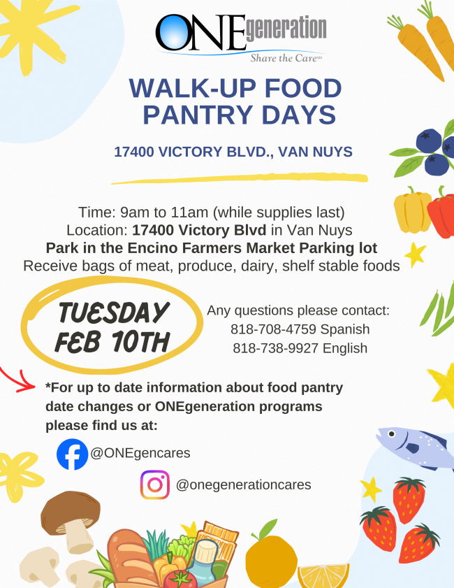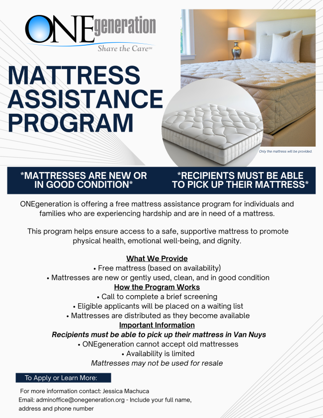 For more information contact Juana Torres at jtorres@onegeneration.org or call 818-708-6603.