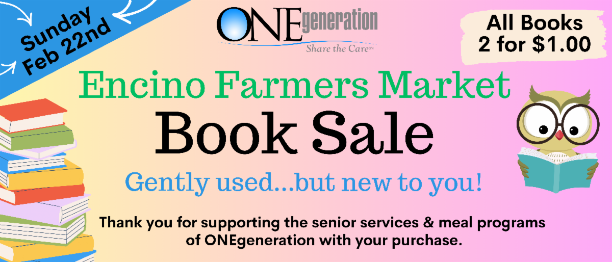 On Sunday Feb. 22nd we will be hosting a Book Sale near the back entrance of the market where you can find your next favorite read. 100% of the donations from this booth support ONEgeneration thanks to our wonderful volunteers. The Bagel Booth and ONEgeneration Boutique next to it also donation 100% of their proceeds supported by the volunteers of the National Charity League, SFV Chapter every week.