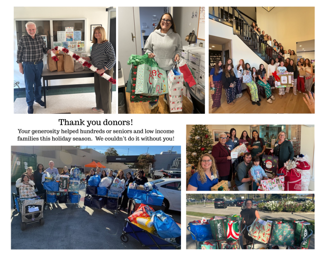 A heartfelt thank you to everyone who participated in SHARE this year! We are incredibly grateful for the support from our corporate partners and philanthropic groups, including Kaiser Permanente - Woodland Hills, UCLA West Valley Medical Center, Intuit, Corebridge, the National Charity League (SFV Chapter), and many others. Thank you also to the families and individuals in the community who embraced the spirit of giving by assisting an older adult this holiday season! Your support for those we serve is truly appreciated.