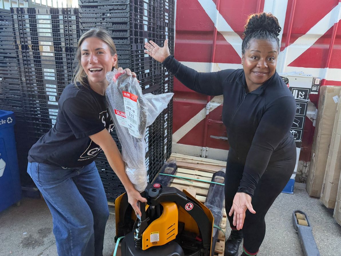 In December, dedicated volunteers from the Kwanza Jones & José E. Feliciano Initiative came together with ONEgeneration for a meaningful day of service and giving. Prior to their arrival, they generously donated two new storage sheds to enhance our Food Pantry program, enabling us to store larger quantities of shelf-stable foods. Additionally, they provided essential electric pallet jacks, which greatly assist our limited staff in efficiently moving bulk foods.