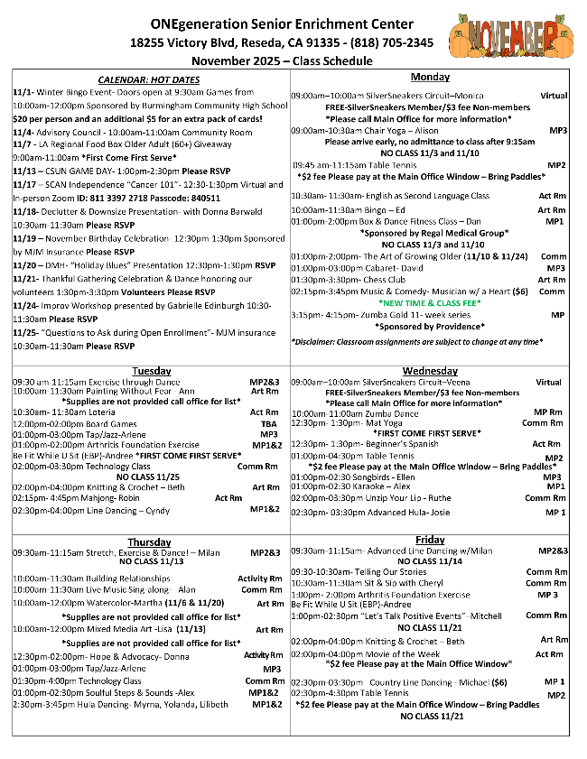 Senior Center Activities
