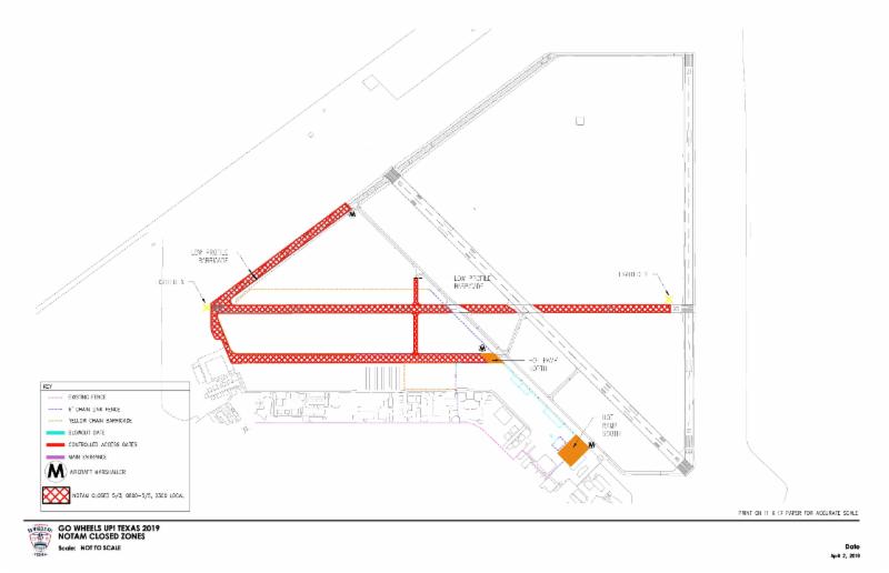Once inside the gate, vehicles will travel straight up the ramp to Taxiway Alpha and then proceed on Runway 8 to parking.