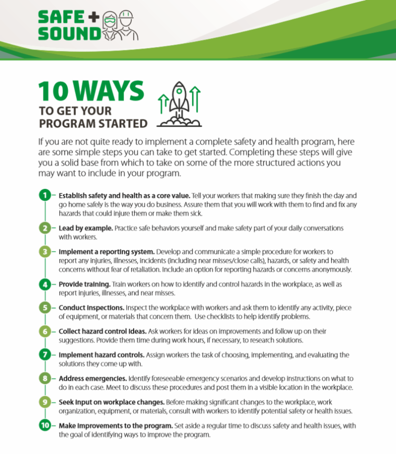 10 WAYS TO GET A SAFETY AND HEALTH PROGRAM STARTED