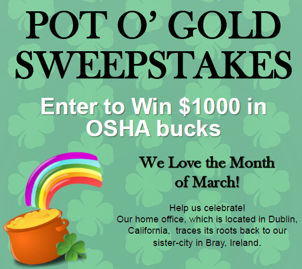 Win $1000 retail value OSHA bucks to be used towards any scheduled classes conducted by the OSHA Training Institute Education Center at Chabot-Las Positas Community College District at any of our convenient locations in 2019.