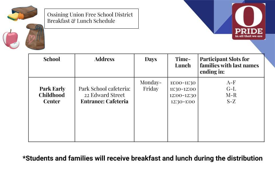 Grab & Go Breakfast and Lunch Program-Grab & Go Breakfast & Lunch will just take place at Park School from 11 a.m.-1 p.m. Please contact Alita Zuber at