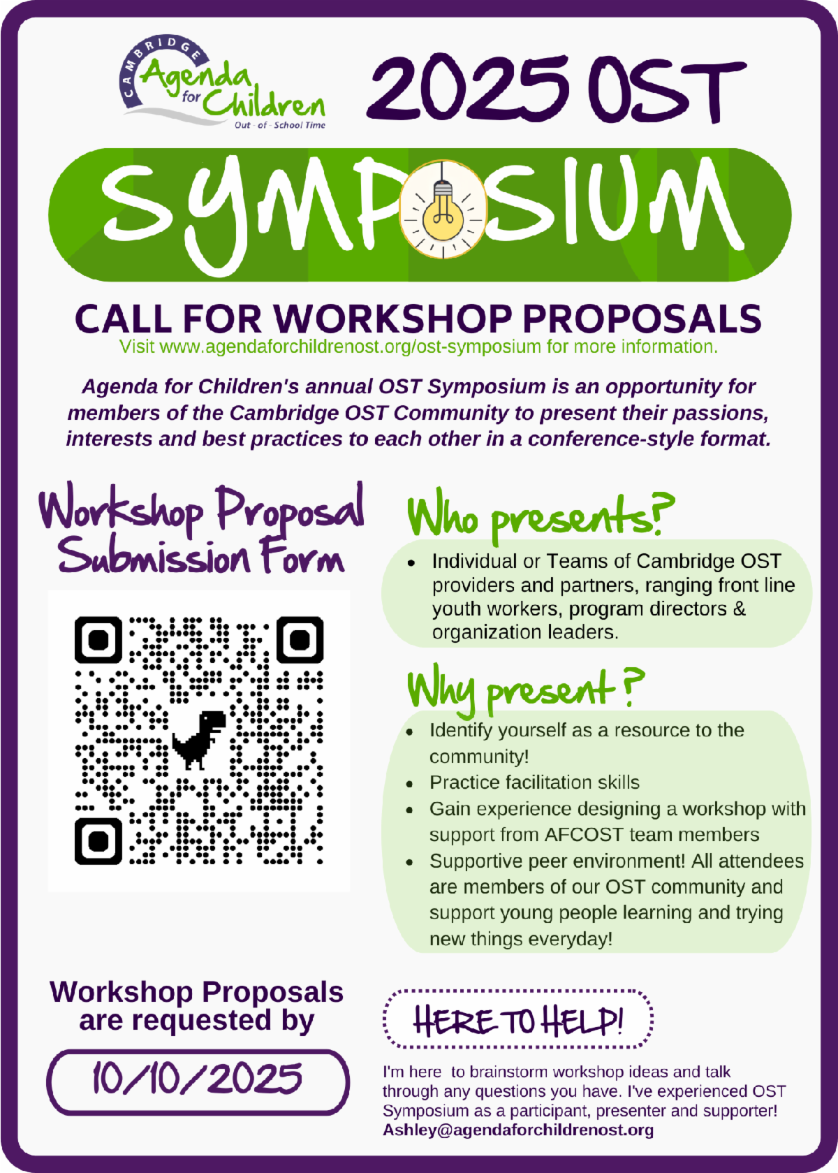- workshop proposals are now being accepted and I'd love to hear your ideas. Mark your calendars, these are three days of fun, innovative and relevant workshops run by your OST peers.