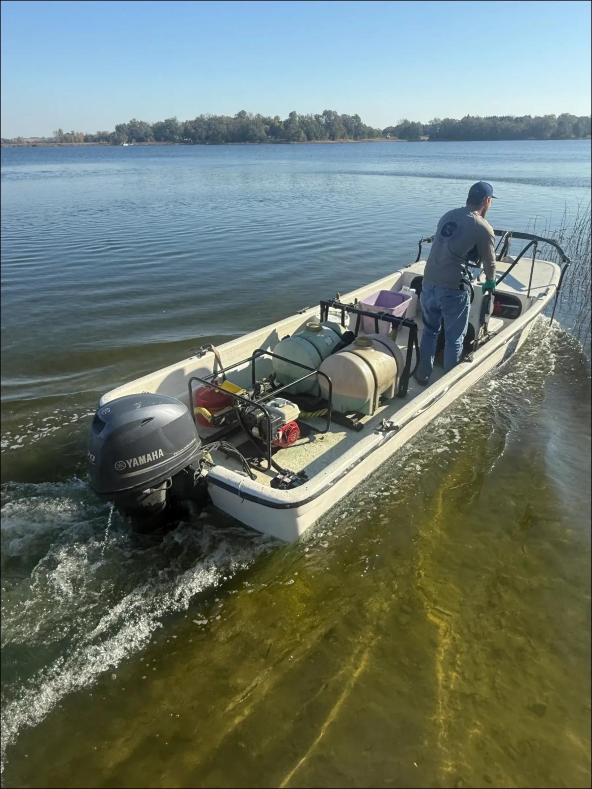 The initial discovery was reported on Thursday, September 11, when the DNR confirmed the presence of both species at the end of the dock at the public access in approximately 4-6 feet of water. Following the confirmation, a comprehensive survey of the lake was conducted on Tuesday, September 16, by Spencer McGrew, Otter Tail County AIS Specialist, and Mark Ranwieler, Aquatic Invasive Species Specialist, Northwest Region, DNR based out of Fergus Falls. The survey found no additional starry stonewort beyond the initial discovery site at the boat ramp.