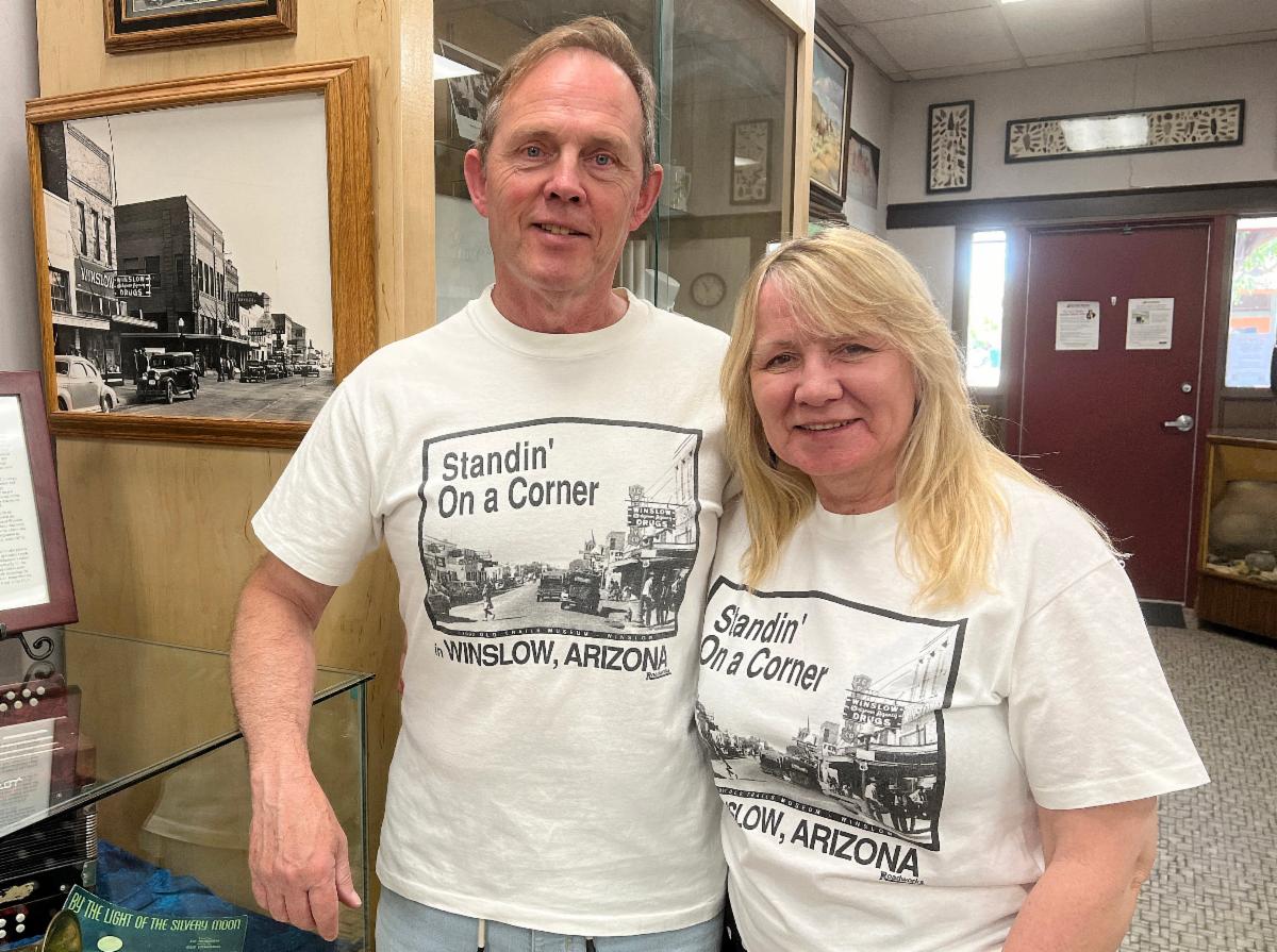 The Old Trails Museum hosted 2,699 visitors at the museum in 2024 (above, Verina and Duncan Litster from Lochgilphead, Argyll, Scotland, visited in October) and 10,110 visitors at its off-site exhibits, which include Journeys to Winslow in the Kenna Courtyard and at the Affeldt Mion Museum. OTM hosted 114 attendees at its public programs, which included the 2024 History Highlight, The Atomic Legacy on Route 66, WHS Annual Meeting, and Past & Present: Winslow Book Talk. People also “visited” the museum’s online outlets, including the OTM Website (35,384 visitors), Facebook page (1,542 followers), and the OTM YouTube Channel (98 subscribers and 2,577 views of the History of Winslow short film). Thanks to all our patrons for your interest in Winslow's history!