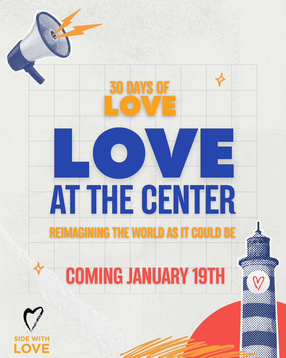 Over five weeks, we will move through a journey from imagination to action, rooting our freedom dreams in faith and bringing them to life in our world. Each week, we will have a written reflection from Side With Love staff; a conversation with a UU theologian; a multi-generational family activity; reflection questions for journaling; a meditative body practice; and a coloring sheet connected to the weekly theme. Our weekly themes will be Reimagining Thriving, Grounding in Context, Mobilizing Action, Nurturing Community, and Exploring Possibilities. Use the button above to receive an email and/or a text when 30 Days of Love 2026 weekly content is available!