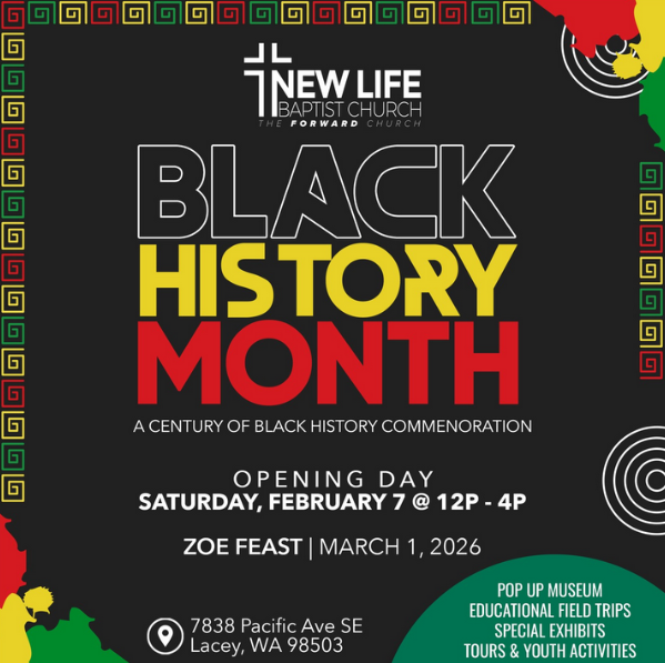 | This year marks the 100th Anniversary of the observance of Black History Month and the New Life Baptist Church is once again providing a month of activities. The highlight of our February month is the Pop-Up Black History Museum which opens Saturday, February 7th at noon until 4:00 PM and will be open to the public every Saturday thereafter from 12:00 PM until 4:00 PM during the month and Sundays 12:00 noon to 2:00 PM following church service. A Genealogy Workshop will take place on Saturday, February 7th from 9:30 AM to 3:00 PM at the LDS Church’s Cultural Center in Olympia, our partner in this activity. All are welcome. Educational Field Trips are available the weeks of February 9th to 20th for middle and high school students and Groups/Organizations are welcome to tour the museum from February 23rd to the 27th from 10:00 AM to 2:00 PM. Youth Activities will be featured at the church for 1st – 12th grade students on Saturday, February 14th and February 21st from 11:00 AM – 3:00 PM. | | | |