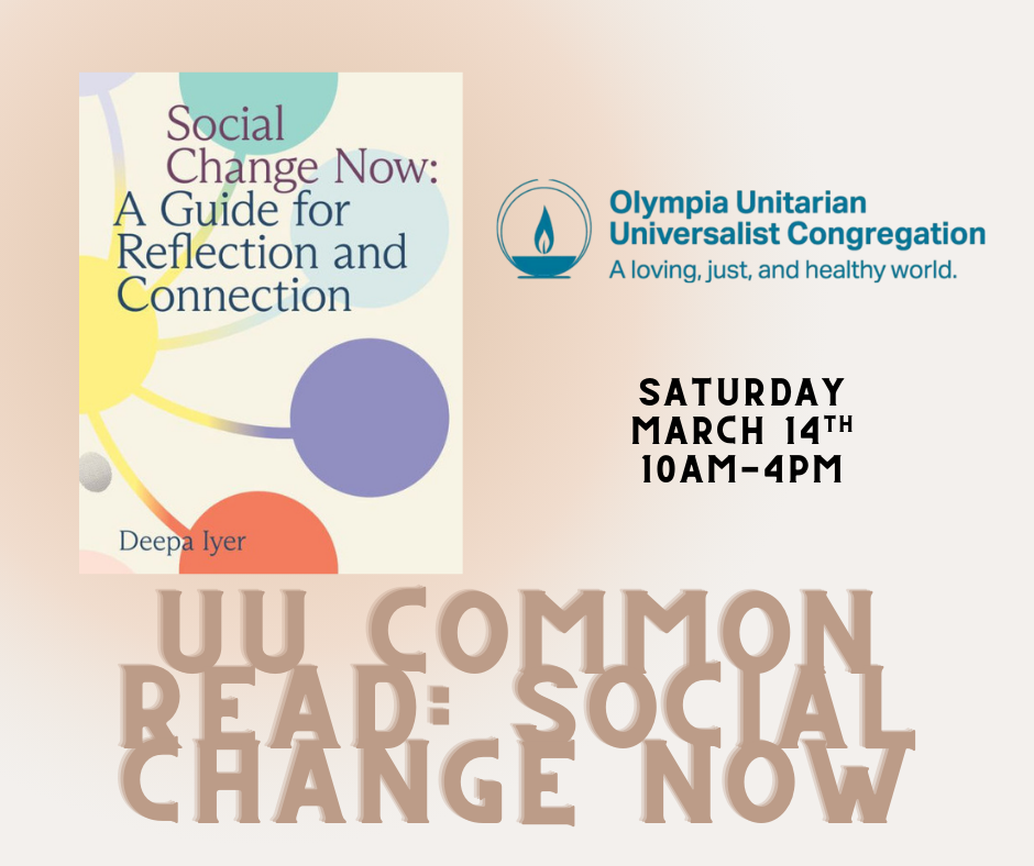 Join Rev. Sara for a one-day workshop (lunch provided) exploring the social change makers ecosystem model using the UU Common Read, Social Change Now! by Deepa Iyer. Learn more and register by clicking here.