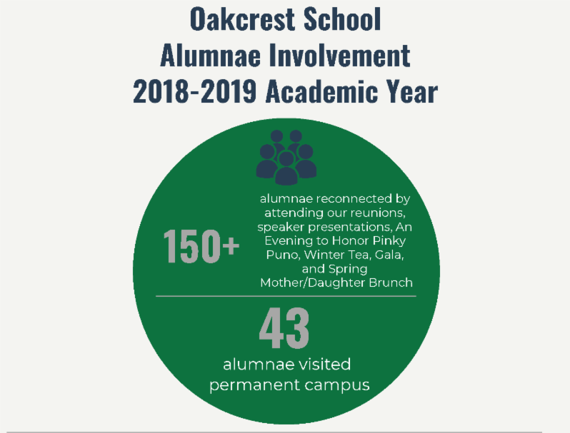 Thanks to all of your financial support for Oakcrest this year. If you have not given yet, please consider a gift to our Annual Fund today. Any amount we receive is important because when seeking grants, we are asked, "What percent of your graduates donate back to their school?" No gift is too small!