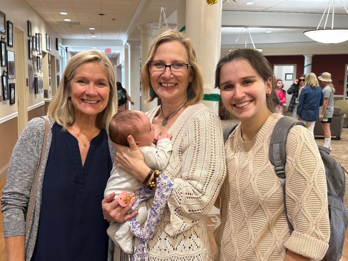 Helen '14, Audrey '16, and Jill '17), recently attended daily Mass at the Oakcrest Chapel with their new granddaughter, daughter of alumna