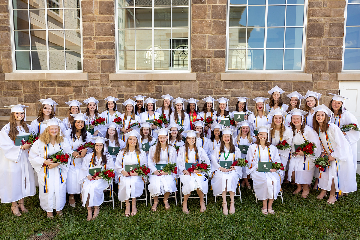 The whole school comes together for Baccalaureate Mass, the last Mass of the school year and the last Mass for the senior class as students, giving thanks to God for the blessing of another school year. The Mass is followed by Awards Day, when senior awards are announced, including the class Acorns (students who have attended Oakcrest from sixth through twelfth grade), Valedictorian, Salutatorian, Athletic Awards, and Edwina Maksym Senior Thesis Award winners.