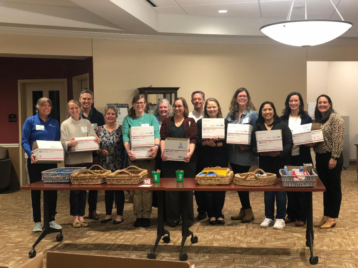 On Wednesday night, we welcomed back alumnae parents who currently have daughters in college, for a wine and cheese social to make care packages for their girls. Lots of goodies were packed into those boxes!