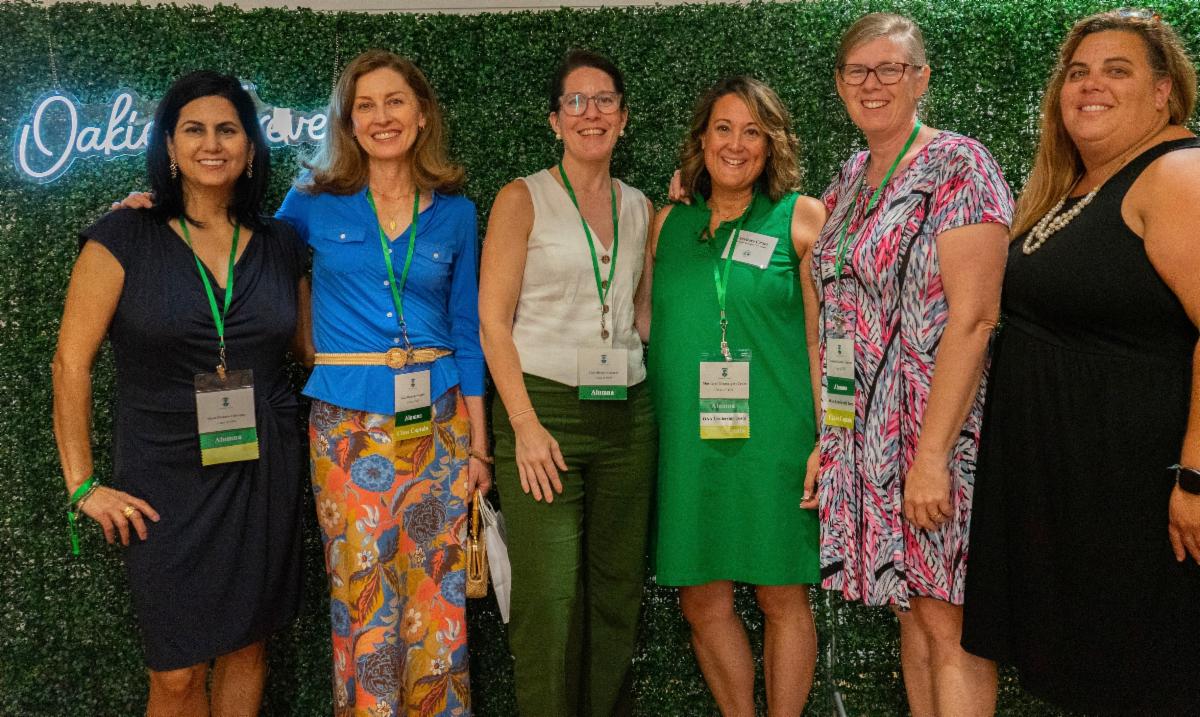 It was such a joy to spend time with alumnae of all ages and their families during our Homecoming 2025 celebrations! It was beautiful to see so many of you process in before the Founder's Day Mass and place roses at the foot of Our Lady of Oakcrest, reminiscent of our graduation day. The weather was extraordinary for September, and we all enjoyed such a spectacular evening for our annual Founder's Day BBQ, followed by a fabulous time in the lobby of the McGowan Family Athletic Center for our Alumnae Cocktail Party and Reunions. The bubble wands and the Oakie Mocktail were a huge hit with the kids, while the adults enjoyed both the Oakie Mocktail and Cocktail, caught up with fellow classmates, took pictures with the Oakies Forever backdrop, and had their husbands, boyfriends and children looking through yearbooks, posters and the picture slideshow to find their beloved Oakie. I couldn't have asked for a better way to kick-off the new school year!