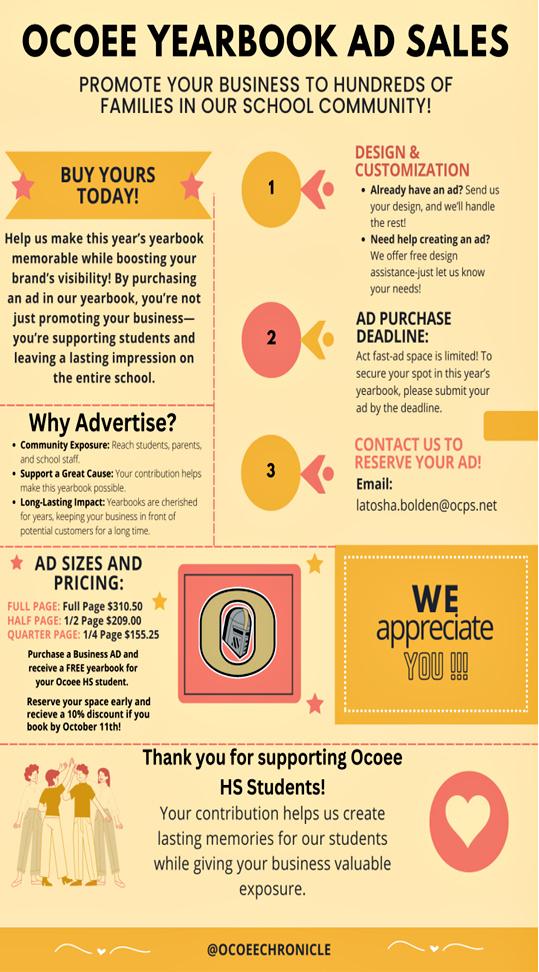 OHS parents who purchase a business ad will receive a FREE yearbook for their OHS students. | |