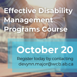 In addition to free online seminars, WCB-Alberta is partnering with Pacific Coast University for Workplace Health Sciences to offer their Effective Disability Management Programs course.