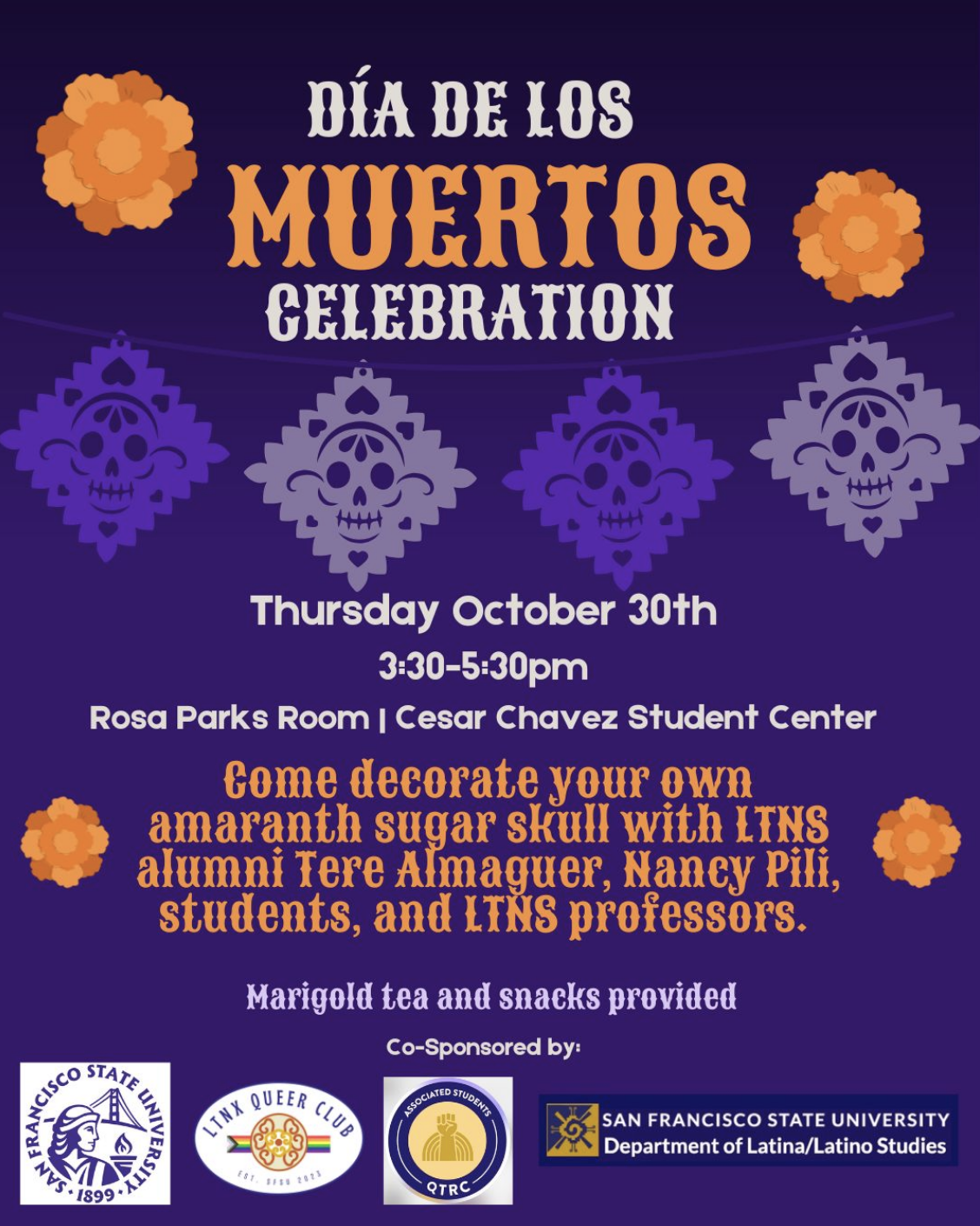 Co-sponsored by SFSU’s Department of Latina/Latino Studies, Queer Latinx Club, and the Queer and Trans Resource Center.