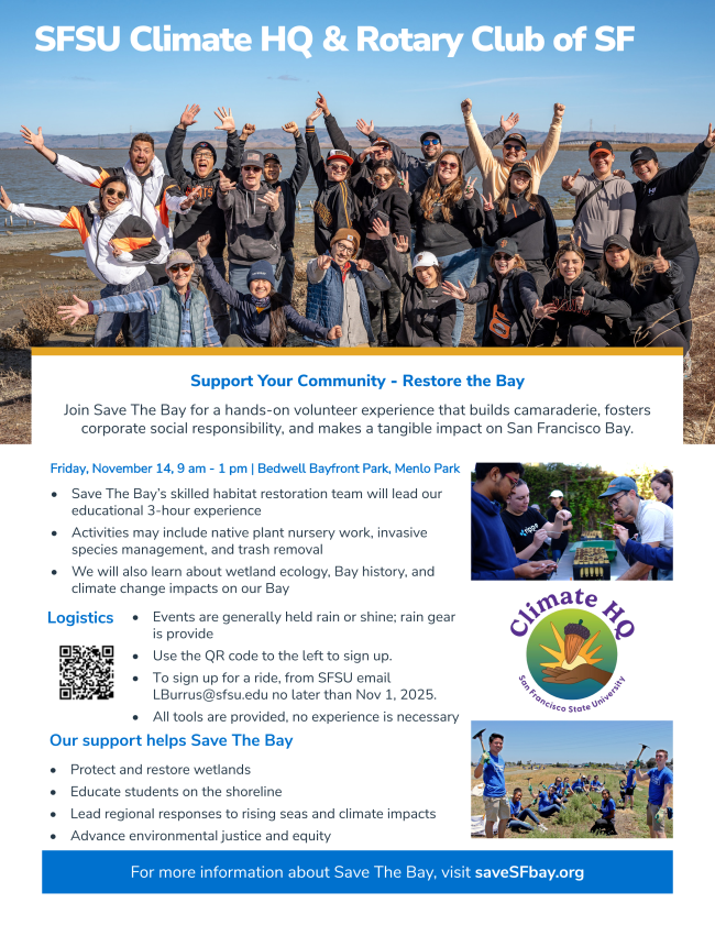Need a ride to Menlo Park? Email LBurrus@sfsu.edu by November 1, 2025 to request a ride. All tools are provided, no experience necessary.