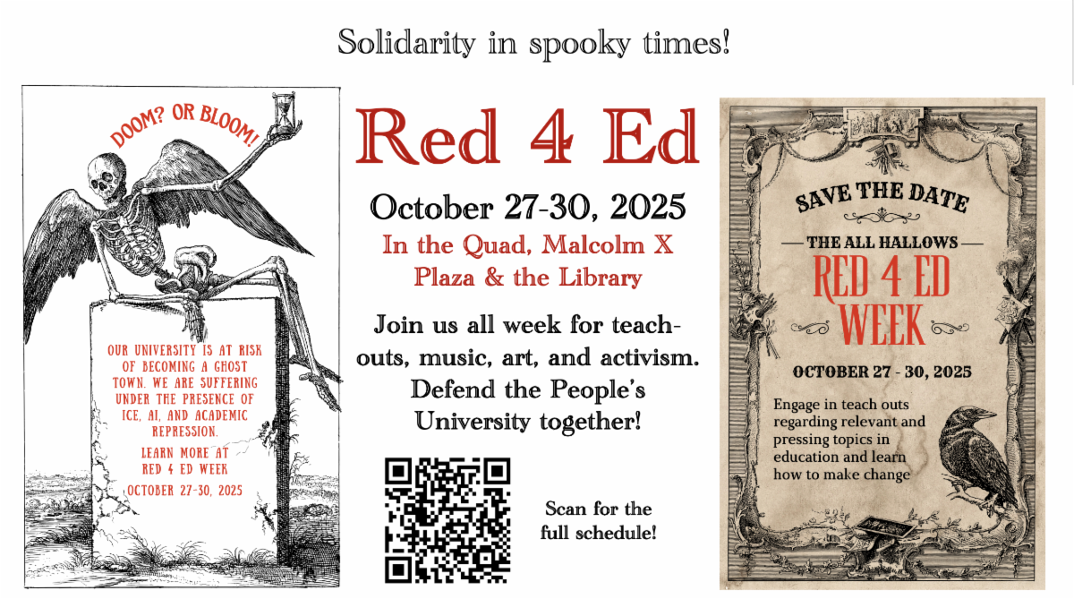 Every year the California Faculty Association and student organizations team up to host Red 4 Ed, a week of panels, art, discussion, music, and organizing to defend the People's University and discuss critical topics affecting the public education system and social justice education. This year's Red 4 Ed featured a teach-out titled, AI Is Not A Tool: Extraction, Exploitation, and the Material Ecology of AI, co-facilitated by Gopal Dayaneni (Race and Resistance Studies), Blanca Missé (Cinema), and Constance Gordon (Communication Studies).