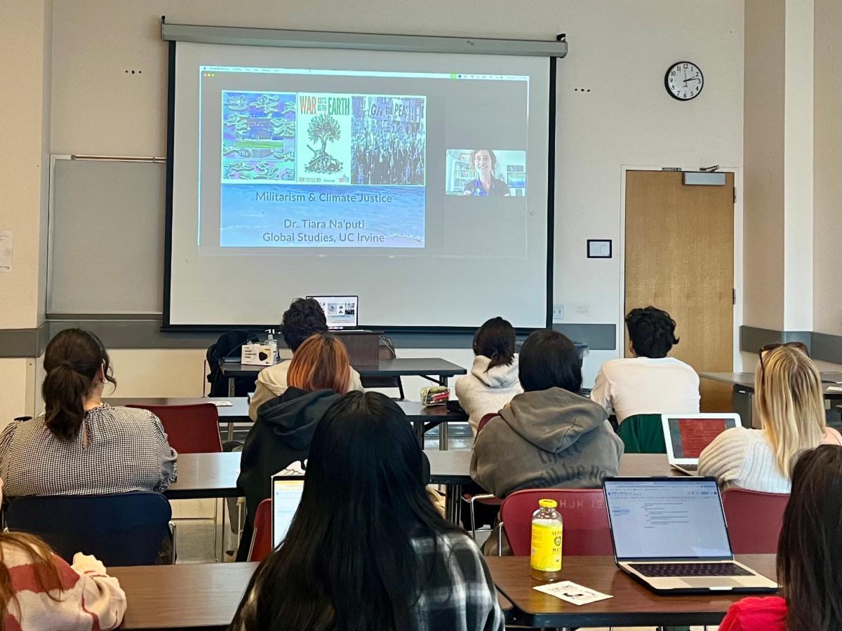 In early October, students in COMM 572: Communication and Environmental Justice (taught by Constance Gordon, Associate Professor of Communication Studies and Climate HQ Faculty) had an eye-opening virtual visit with Dr. Tiara R. Na'puti (Chamoru), Associate Professor of Global and International Studies at UC Irvine about U.S. militarism's contribution to the climate crisis. They learned about how militarism functions as a rhetoric, ideology, and material network of polluting technologies that harm lands, waters, and peoples across the planet. As a Chamoru scholar with connections across the Pacific, Dr. Na'puti also amplified ways Indigenous communities are connecting their struggles in response. Read about some of Dr. Na'puti's public scholarship here and here.