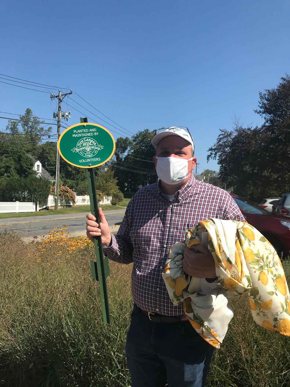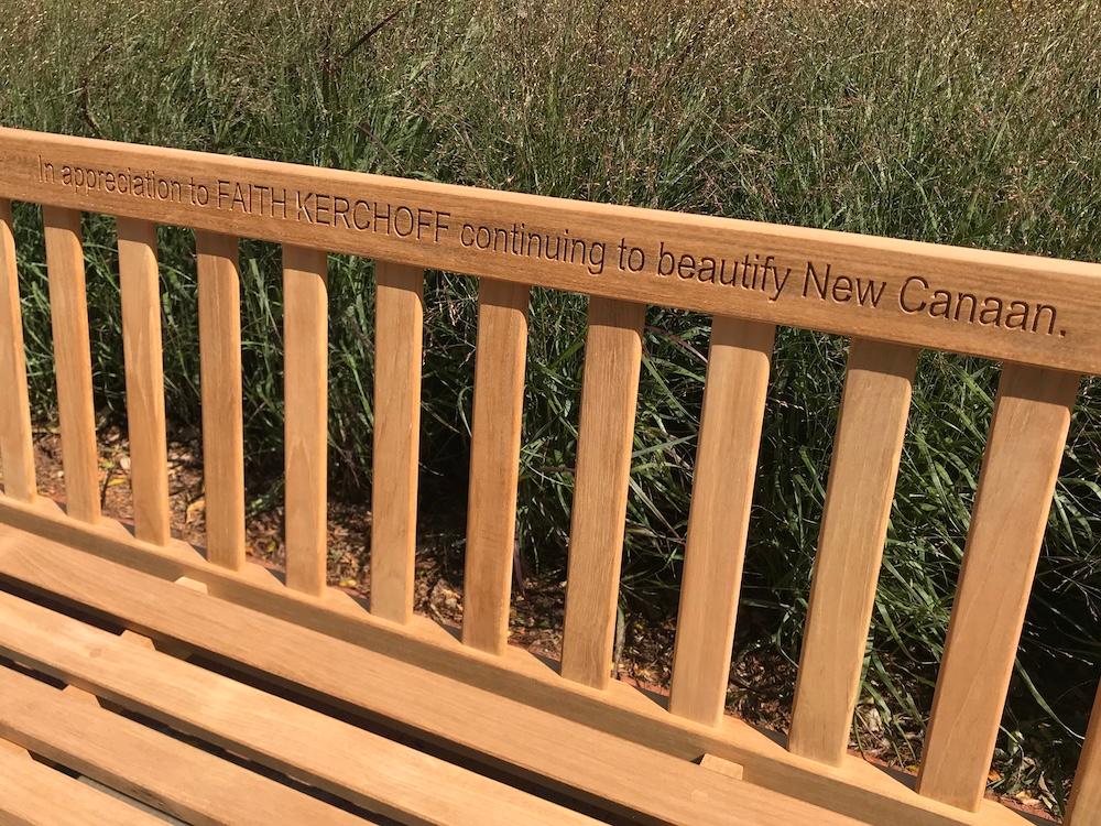 September 23, 2020 was a very special day for New Canaan Beautification League! We Zoomed forward with our first virtual webinar, Faith Kerchoff's marvelously informative presentation about our organization's impressive history and many projects. Later, many gathered at Mead Park for the dedication of a new bench honoring Faith's many contributions to our town. That was followed by a leisurely stroll along the Gold Star Walk and Rob Carpenter distributed the attractive new triange signs designed by Faith.