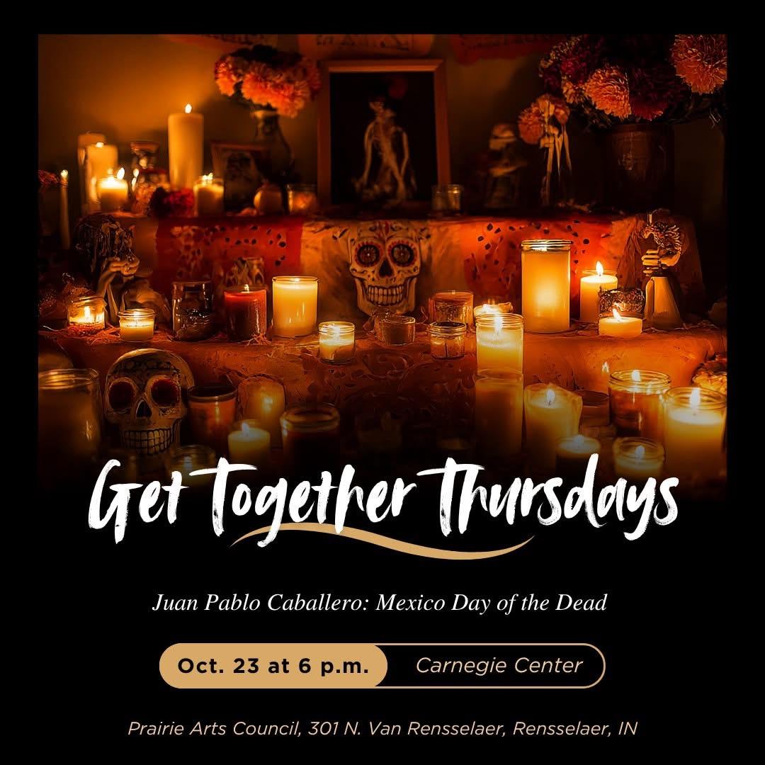 GTT is a multi-disciplinary program celebrating music, theater, and the written word held on the 4th Thursday of the month. In October Juan Pablo Caballero will share details of the art and culture of Dia de Los Muertos, the Mexico Day of the Dead. To meet at the Carnegie Center. Free to the public.
