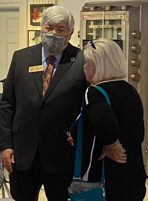 Cape Cod Community College President Dr. John Cox chats with former ALL President Judy Roettig