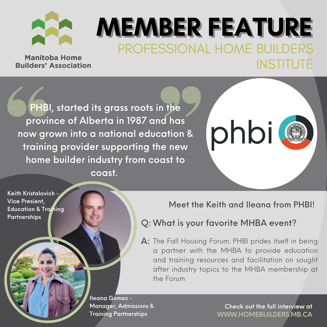This month's feature member is Professional Home Builders Institute (PHBI)!