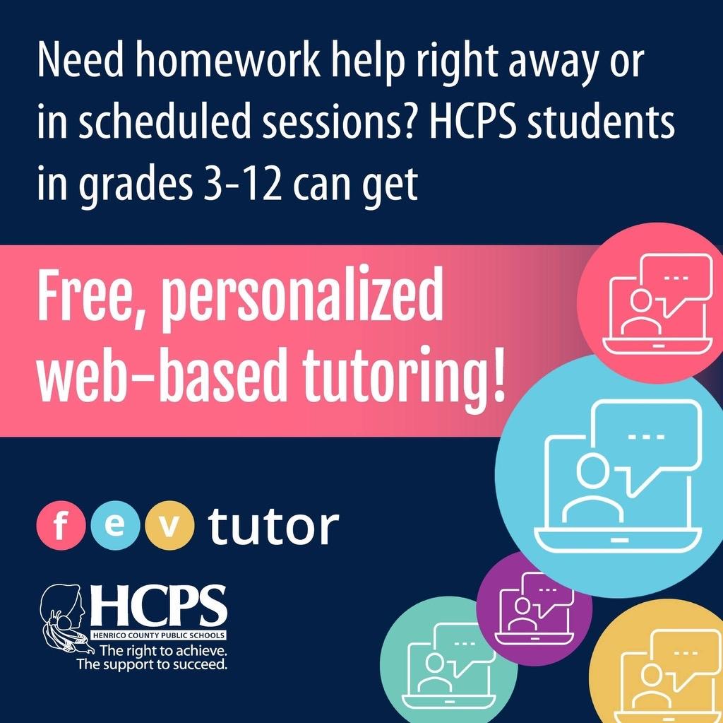 Henrico County Public Schools and FEV Tutor partner to provide students in grades 3-12 with high-quality, division-sponsored virtual tutoring and homework help. FEV Tutor delivers live, one-to-one support to help students grow academically.