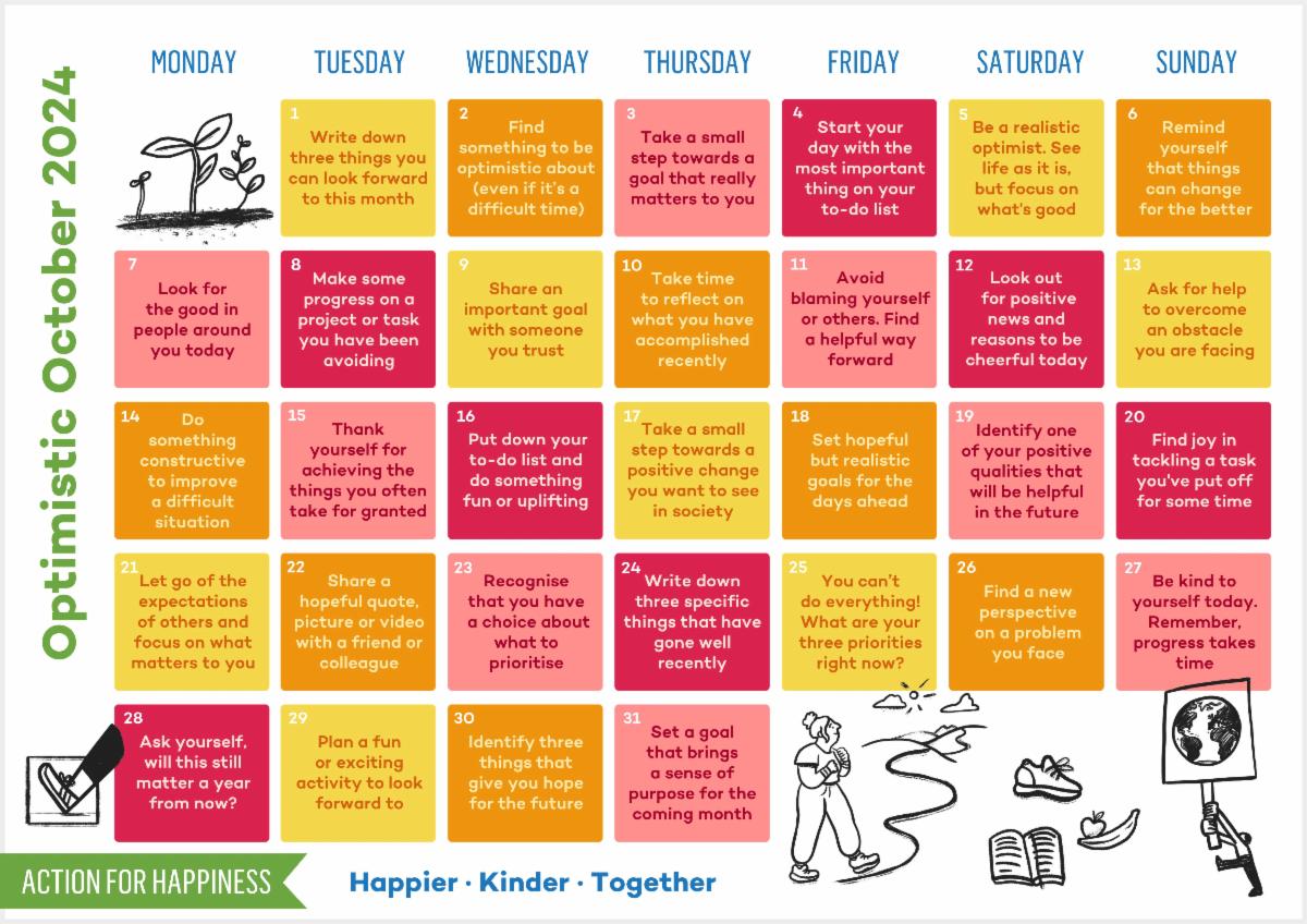 Join the Optimistic October Challenge and receive daily emails that help train our brains to see what's good. This challenge will help you develop realistic optimism by creating a habit of taking small positive actions every day.