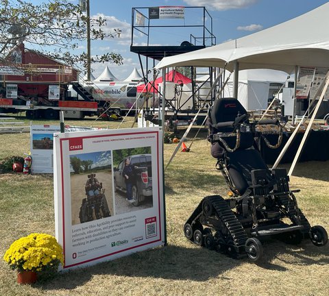 Farm Science Review 2024 was another great show with many opportunities for networking, outreach, and education. Austin from Cursive Ohio stopped by to present the check from the ride, Marty Cotterman represented LifeLyfts, and Derek and Mike from DM Carts demonstrated their modified carts to visitors. More