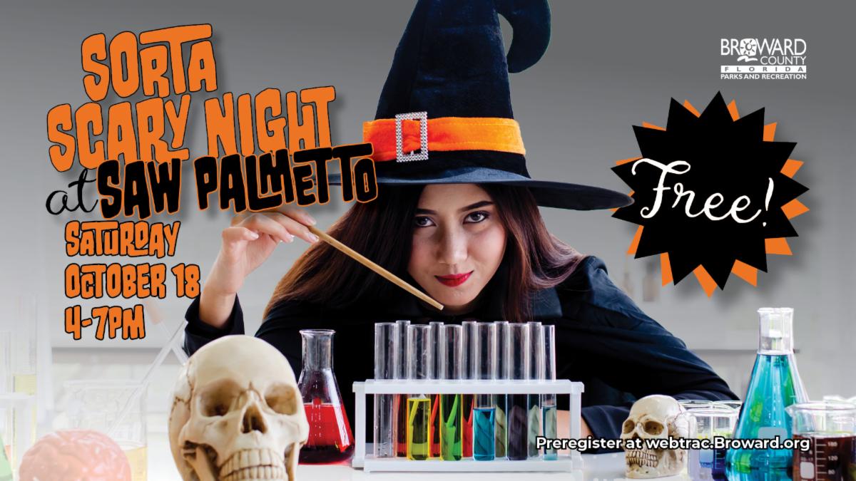 Sorta Scary Night at Saw Palmetto Natural Area on October 18 at 4PM. Enjoy tricks, treats, and costumes with fun experiments and a semi spooky nature trail. Register for this free event on our Website.
