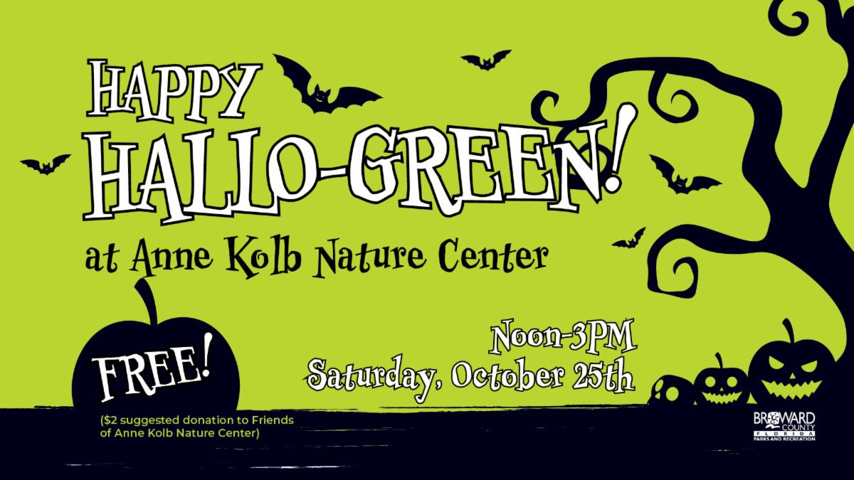 Happy Hallo-Green at Anne Kolb Nature Center on October 25 at noon. Celebrate fall with environmentally friendly activities, games, arts and crafts, and more. This program is free but suggested donation of $2/person to Friends of Anne Kolb.