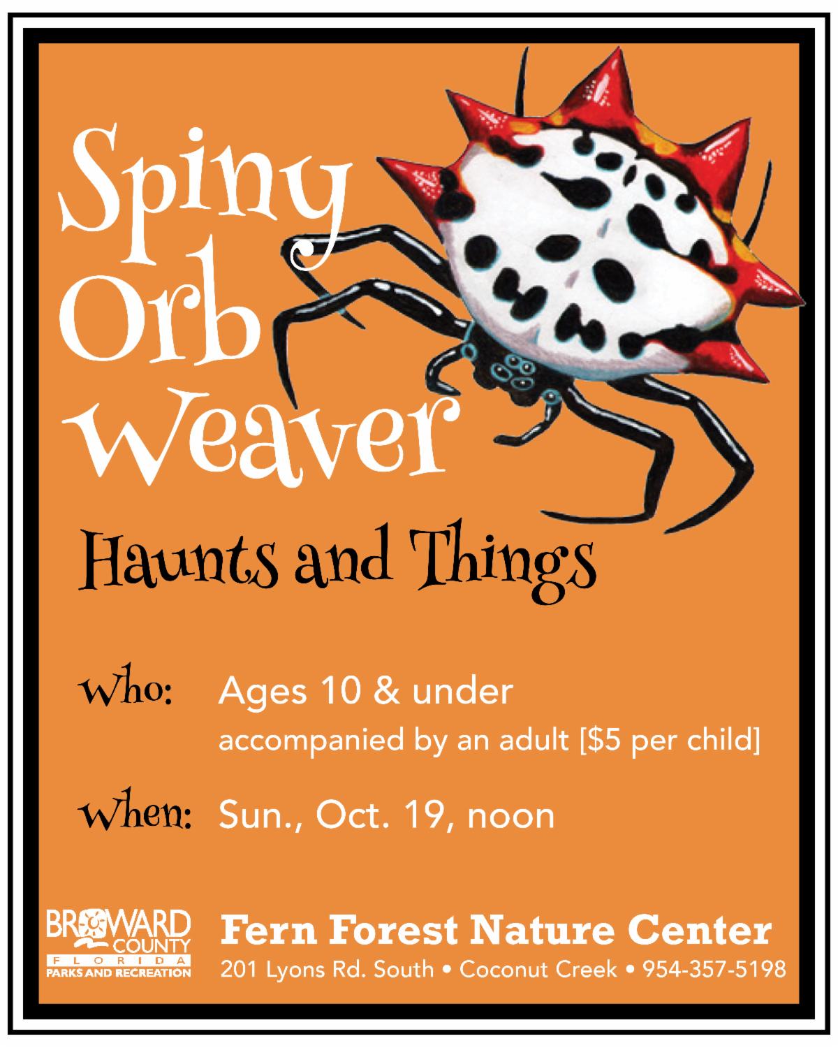 Funtober at Fern Forest Nature Center on October 19 at noon. Join us for this Halloween-themed program that includes a spider lesson, a craft, and a nature walk. The program is $5 per child and preregistration is required.