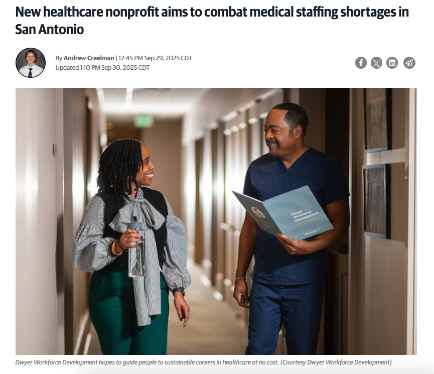 | Turning “What If?” Into “We’re Doing It!”—Watch Barb Clapp on The Nonprofit Show | | CEO Barb Clapp joined Julia Patrick on The Nonprofit Show podcast to share how a vision that started from scratch a few years ago is now empowering 10,000 Scholars across seven states—and aiming to serve 100,000 Scholars by 2030. | | Combating Medical Staffing Shortages in Texas | | Community Impact recently featured DWD’s launch into San Antonio in July 2025, highlighting our efforts to address the city’s medical staffing shortage and train the next generation of healthcare professionals. | | |