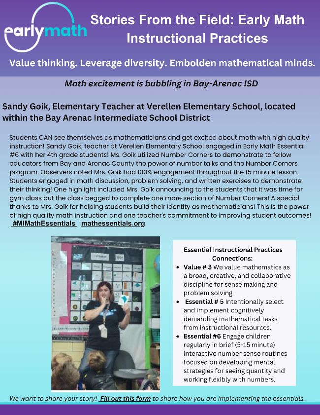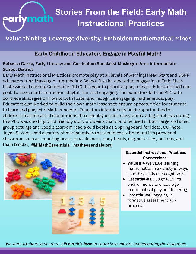 | Math excitement is bubbling at Bay-Arenac | | Early Childhood Educators Engage in Playful Math | Comprehensive School Mental Health System of Supports | |