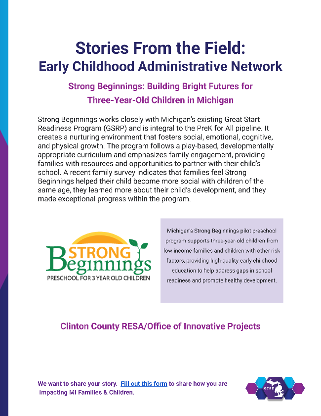 - Strong Beginnings: Building Bright Futures for Three-Year-Old Children in Michigan