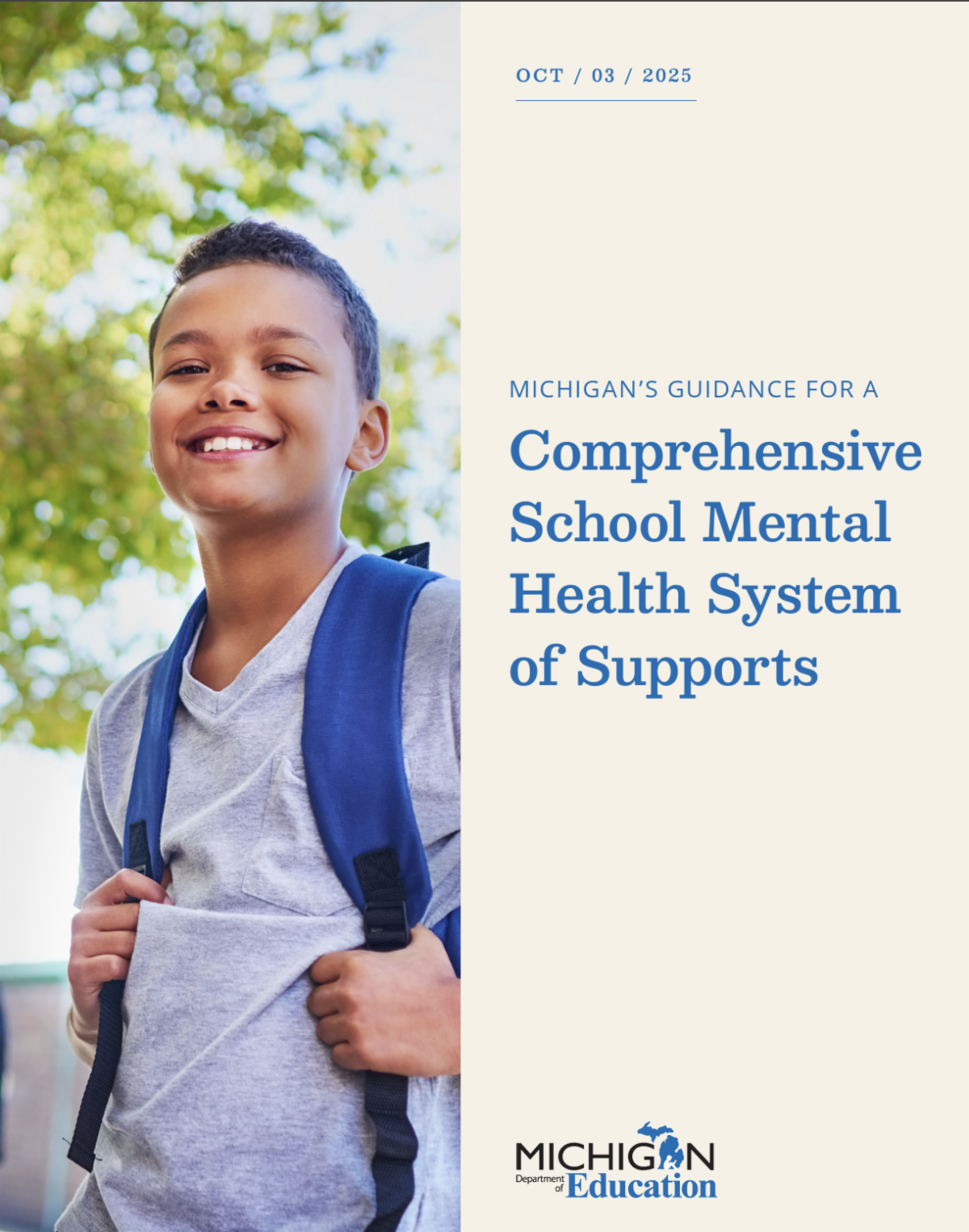 The Michigan Department of Education's (MDE) School Behavioral Health Unit in the Office of Health and Safety is proud to share the approved Guidance for a Comprehensive School Mental Health System of Supports, and a 2-page supplemental brief. Both documents are available on MDE’s Mental Health page.