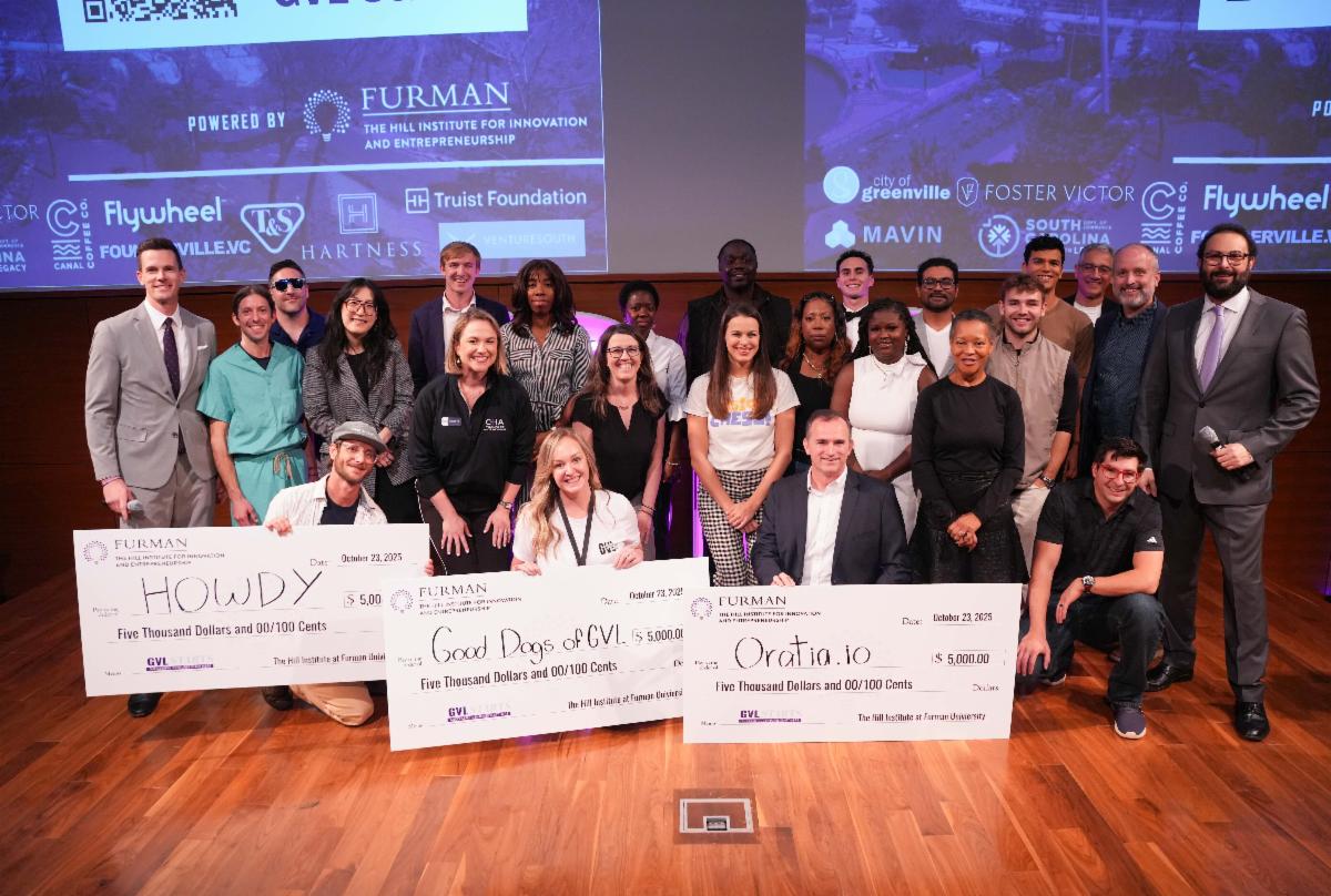This month’s stories highlight that spirit in action: from the high-energy GVL Starts Venture Showcase, where new founders took center stage, to the announcement of our newest Entrepreneur in Residence, Shane Grivich, who will guide and inspire Furman’s next generation of innovators. We also celebrate the achievements of our Palmetto Pitch competitors, the generosity of Ken and Chase Clemens, and look ahead to Advantage Greenville on November 7, one of our most exciting events of the year.