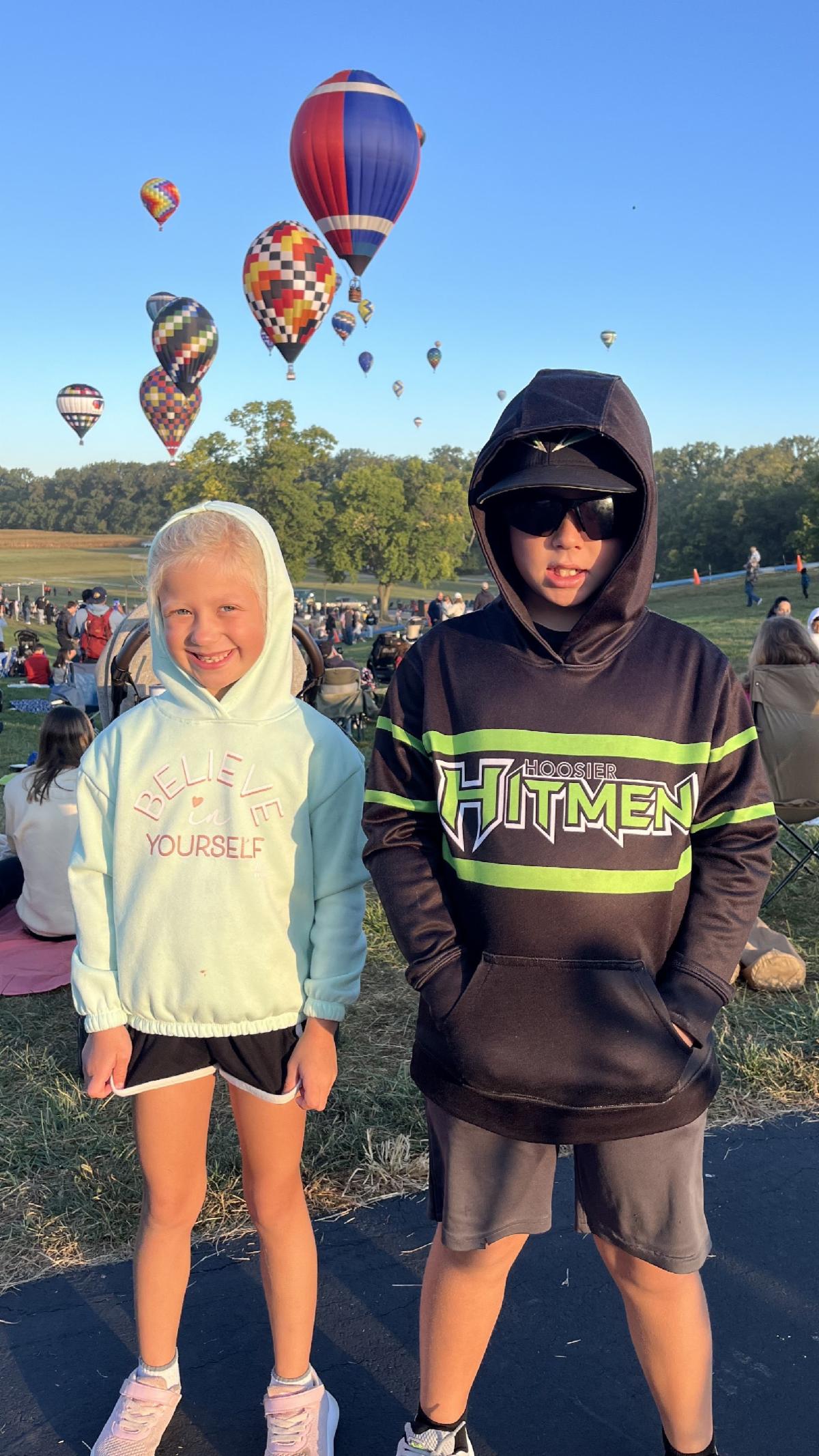 | | Rhonda McNall-Crisenbery, PNP, Erin Schroering, SWDO, and Pat Menge, PNP representing Psi Iota Xi at the Hear Indiana Run for Sound at Conner Prairie. Jaiden (future legacy member) points our PIX Logo on the supporter's board. | | Jaiden and Erin Schroering representing Psi Iota Xi at the 2025 Hear Indiana Run for Sound. | | Jaiden and Nolan Schroering enjoyed the balloon festival at Conner Prairie prior to the 5K starting. | |