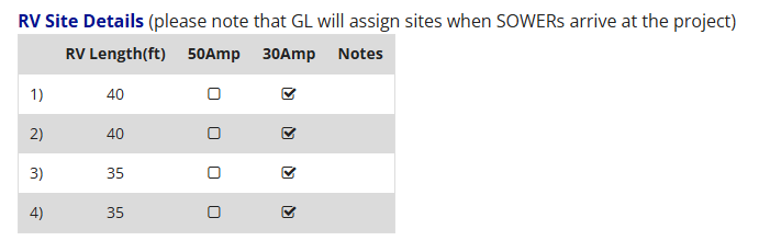 And remember: individual sites are not requested. The Group Leader (GL) will assign sites once you arrive.