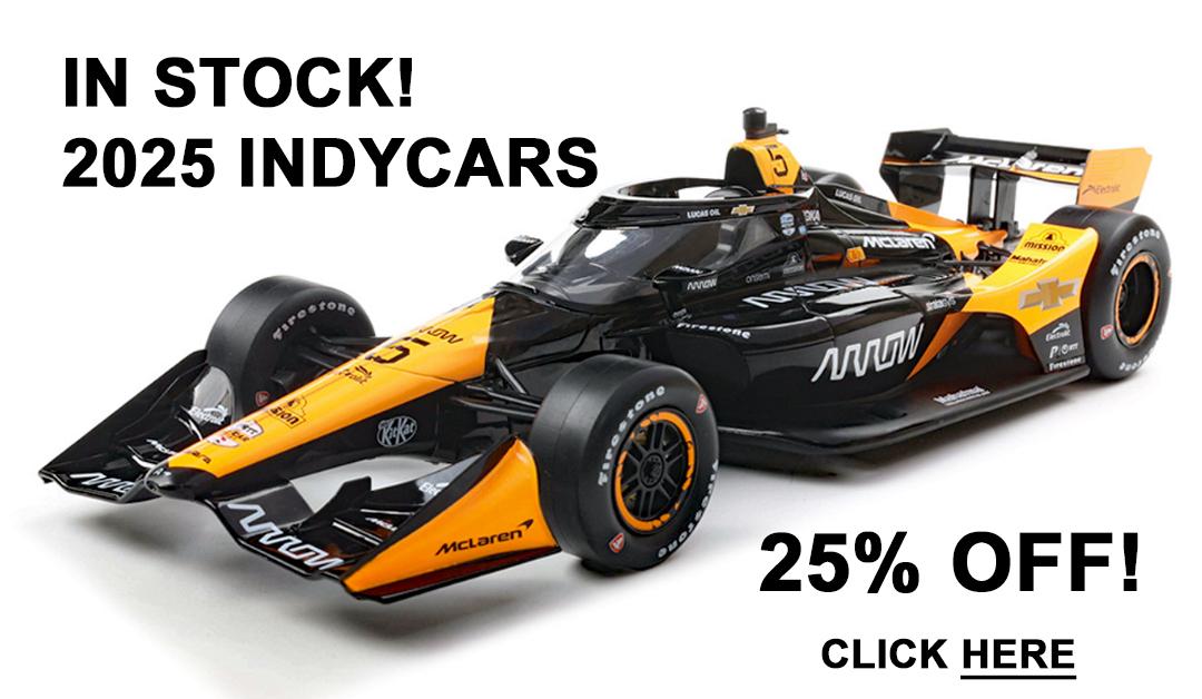 A selection of 2025 Cadillac V-Series.R Prototypes from both IMSA and the 24 Hours of Le Mans in 1/18 and 1/43 scale lead things off. Also included are 2025 Corvette, Porsche, Acura, BMW, Lamborghini and Mercedes entries from IMSA, Le Mans and the DTM with a road going Corvette ZR1 in Torch Red thrown in to round things off.